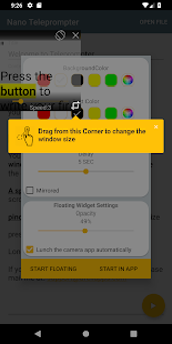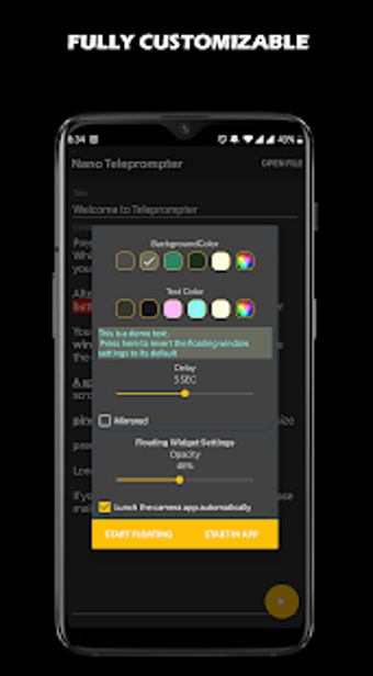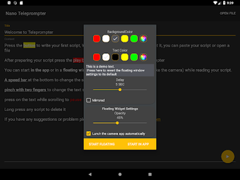 Nano Teleprompter, Android 9.0 ve üzeri için kullanılabilir. Uygulamanın şu anki sürümü 7.2.2'dir ve onu İngilizce, İspanyolca ve Portekizce olarak çalıştırabilirsiniz.